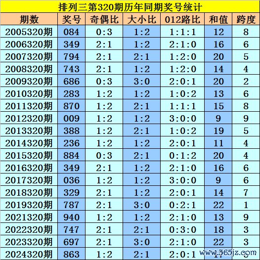 开奖归来:陈列三第2025319期开出奖号865,奖号012路比为1:0:2,大小比为3:0,奇偶比为1:2,最近三年第320期同期开出奖号为:第2022320期:747、第2023320期:697、第2024320期:863。